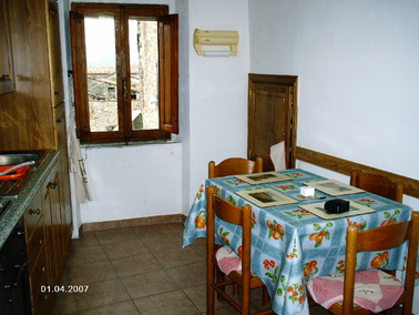 The house (Casa del Giglio) is part of the castle walls with a private garden and a main door entrance. The location of the house is at the rear of the village, perfect for a peaceful relaxed holiday but only 5 minutes walk from the car park situated at the front of the village. The house has been restored yet kept as original as possible. The house and private garden with a pergola and fruit trees and vines enjoys beautiful views of the surrounding hills for al fresco relaxing or dining or sunbathing.